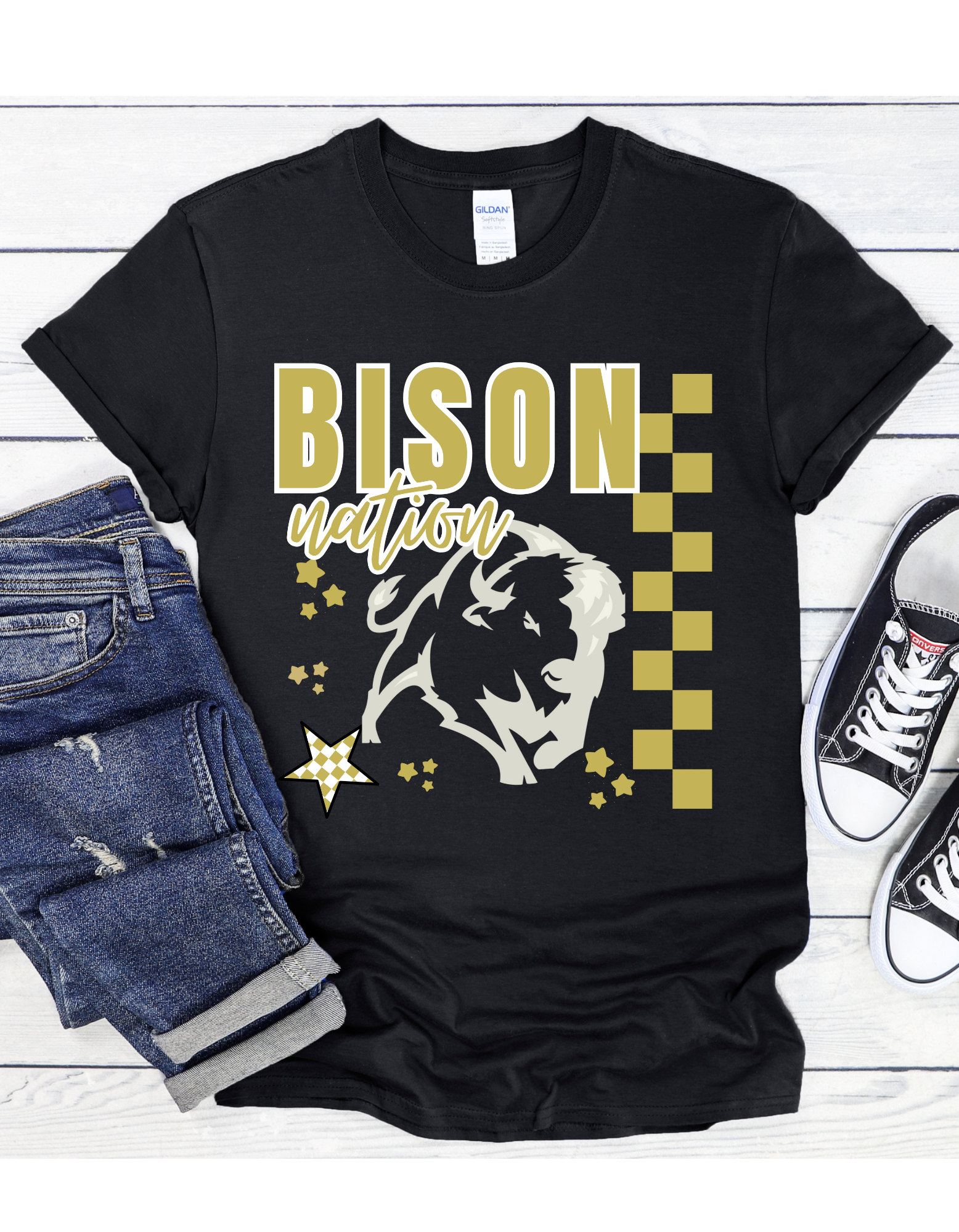 Bison Checker Short or Long Sleeve T Shirt
