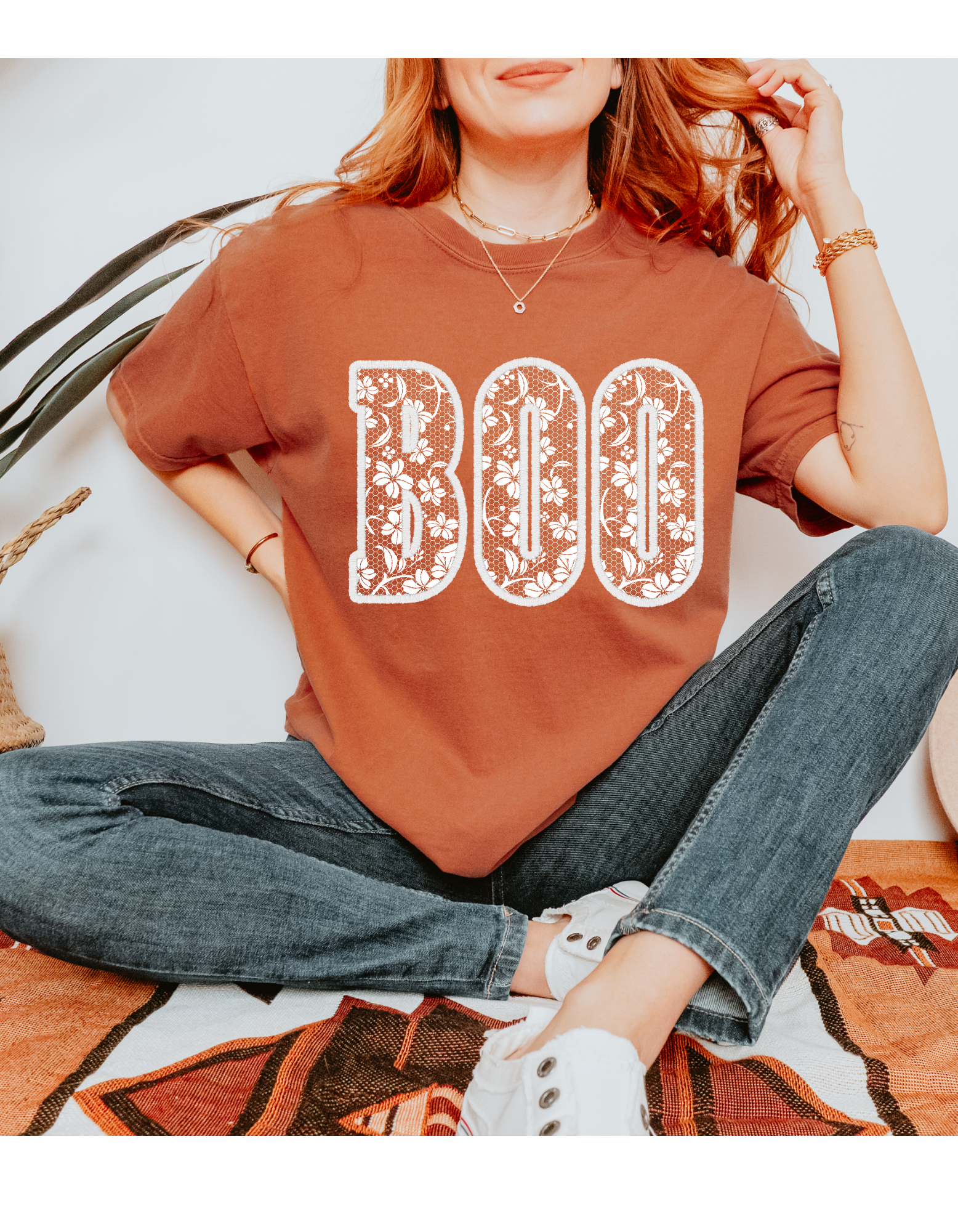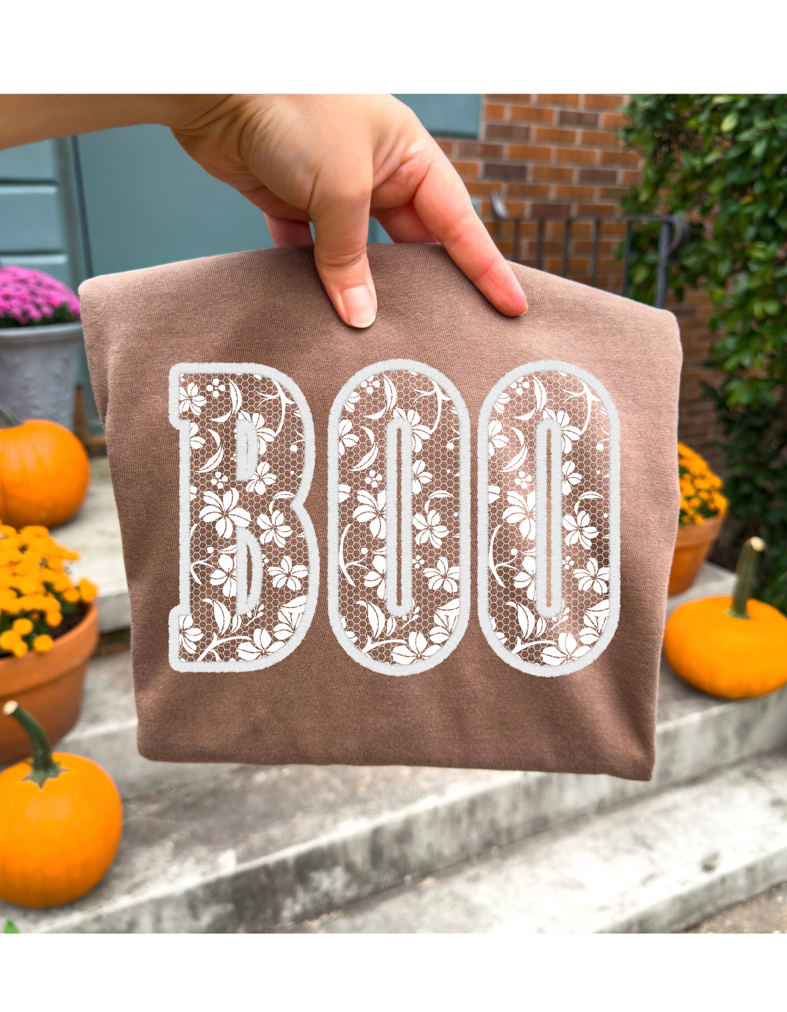 Boo Faux Lace Design Short or Long Sleeve T Shirt
