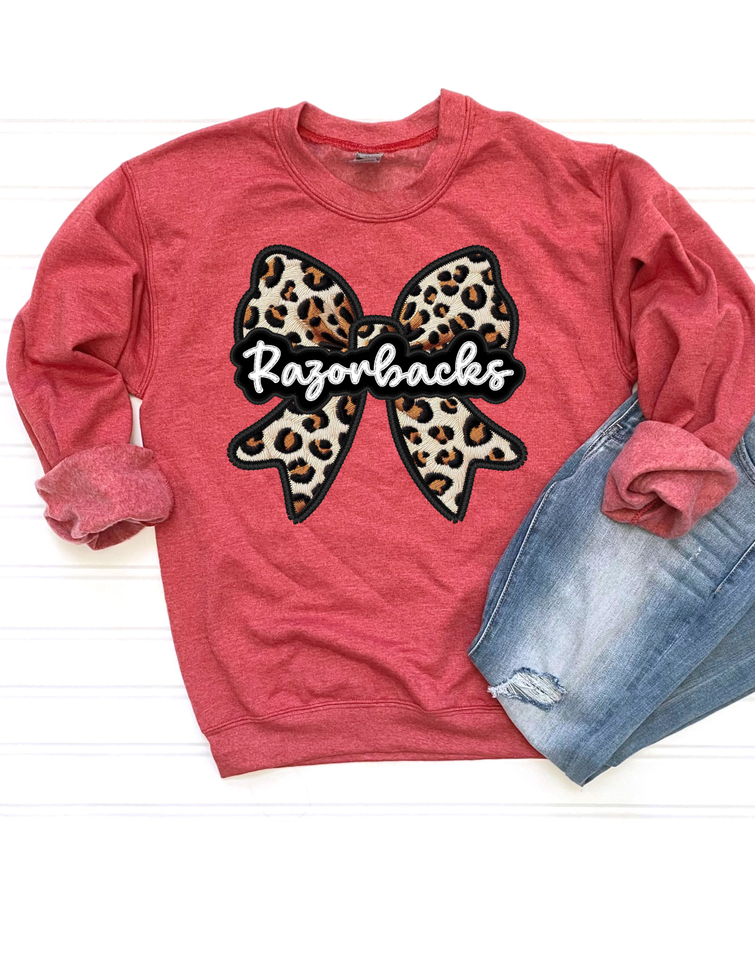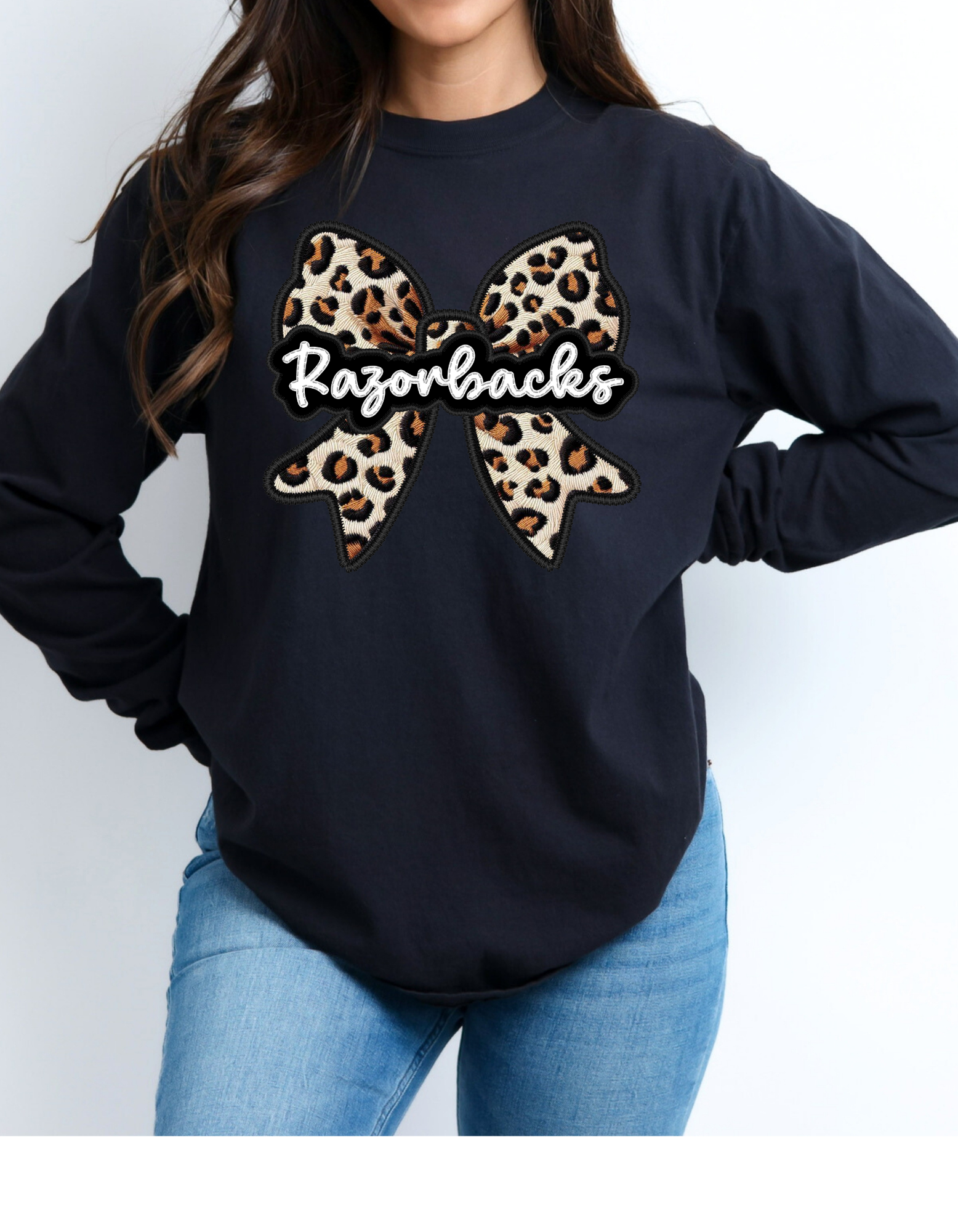 Razorbacks Leopard Bow Long Sleeve Shirt or Sweatshirt